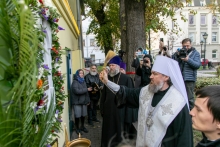 Митрополит Григорий передал собравшимся Первосвятительское благословение Святейшего Патриарха Московского и всея Руси Кирилла и в своем слове отметил, что Господь по молитвам новомучеников и исповедников Церкви Русской сейчас дает нам особое время возрождения православной веры, о которой мы можем свидетельствовать в том числе и через воздвижение храмов, возрождение наших святынь. Владыка выразил надежду, что и разрушенный старинный Успенский храм будет возрожден, пусть даже и не на этом самом месте.