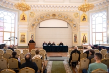 Далее прошел круглый стол «Связь между "бинарным подходом" и "неопапизмом" в современном константинопольском богословии». В тот же день в СПбДА состоялось заседание секции «Институт Вселенского Собора как историческое явление».