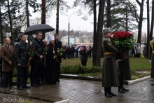 Далее состоялось возложение цветов к подножию мемориала, в котором приняли участие митрополит Вениамин, председатель Минского городского исполнительного комитета Владимир Кухарев, председатель Минского городского совета депутатов Артем Цуран, прокурор г. Минска Олег Лаврухин, представители органов власти, депутатского корпуса, духовенство, молодежь и актив общественных объединений.