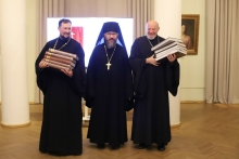 Кульминацией события стало торжественное вручение Новгородской епархии полного комплекта нового издания Геннадиевской Библии. Девятитомник был передан председателю епархиального отдела религиозного образования и катехизации протоиерею Александру Ранне и заведующему кафедрой теологии НовГУ священнику Евгению Зайцеву для использования в научной, образовательной и духовно-просветительской работе.