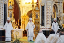 Наш народ, как ни один другой, прошел через страшные исторические обстоятельства, но мы выдержали, и сегодня здесь, в храме, стоят внуки и правнуки тех, кто жизнь свою полагал за Христа Спасителя. Может быть, в ответ на эти скорби, эти страдания Господь изливает сегодня благодать над нашей страной, над нашим народом. Достаточно посмотреть вокруг и увидеть, что в мире происходит, во что превращается человеческая нравственность, как истребляется нравственное начало в душах людей, как создаются разного рода философские псевдоучения, направленные на то, чтобы оторвать человека от Бога. Но все это не может возыметь силы над нами — над народом, родители и праотцы которого прошли тяжелейшие испытания, оставшись верными Господу и Спасителю.