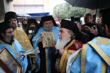 Здесь Патриарх Феофил по традиции возглавил праздничный крестный ход духовенства Иерусалимской Церкви и других Поместных Православных Церквей и паломников от монастыря святого Иоанна Предтечи, известного как «Каср-эль-Яхуд», к месту Крещения Господня на берегу реки Иордан.