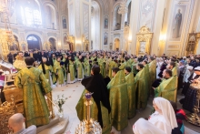 На сугубой ектении была вознесена молитва о Святой Руси. Богослужебные песнопения исполнил Большой митрополичий хор духовенства Ростовской епархии под руководством протодиакона Владимира Зубрицкого. Проповедь перед причастием произнес настоятель Александринского храма г. Ростова-на-Дону иерей Иоанн Афонин.