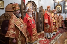 За богослужением были вознесены сугубые молитвы о Святой Руси, а также о скорейшем избавлении от уз и пленения митрополита Святогорского Арсения.