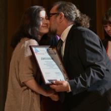Гран-при фестиваля духовно-нравственного кино для детей и молодежи, посвященного памяти св. Иоанна Кронштадтского, заслуженная артистка России, депутат Законодательного собрания Санкт-Петербурга Анастасия Мельникова вручила режиссеру Константину Тищенко – за фильм «Пробуждение».