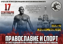17 сентября 2016 г. в Москве по благословению Святейшего Патриарха Московского и Всея Руси Кирилла пройдет IV общегородской культурно-спортивный праздник «Православие и спорт», сообщает пресс-релиз движения «Сорок сороков».